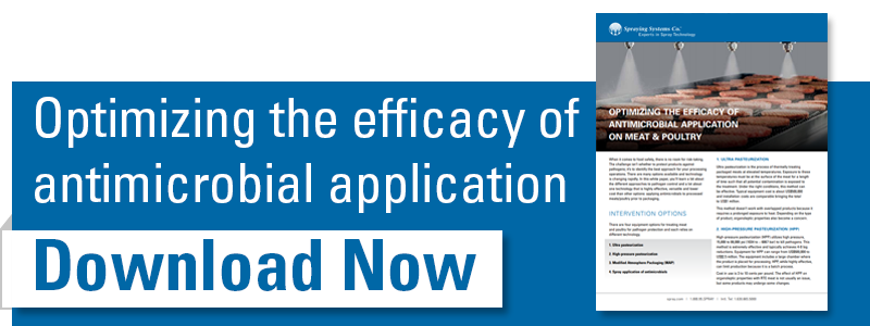 Good hygiene measures in the production process are often not sufficient to prevent contamination. In order to increase food safety, antimicrobials have been developed by various liquid producers. These are often sprayed directly onto the product by using a spray system.