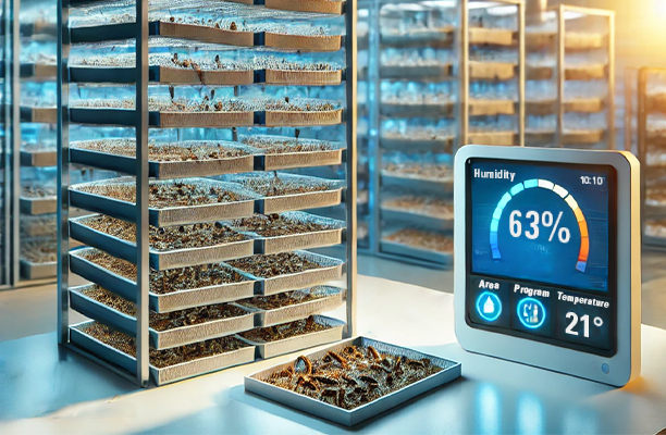Humidity control plays a vital role in insect farming. Insects thrive in environments with high humidity, and maintaining those levels consistent is crucial to their growth, health, and overall productivity. The right level of humidity reduces stress, enhances development and minimizes the risk of disease among insects, ensuring optimal conditions for insect development. These aspects make humidity control a determining factor for the insect farming industry.