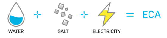 Generated on-site, ECA solutions allow facilities to clean as frequently as needed, clean and disinfect numerous types of surfaces and adhere to the most effective methods for infection prevention. An on-site generation (OSG) system uses a simple chemical process called electrolysis to produce a multi-purpose cleaner and a sanitizer/disinfectant – two effective ECA solutions. The only required ingredients are water, salt and electricity.