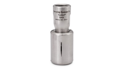 - TankJet 9-A produce dos aspersiones laterales planas para una cobertura de 2 x 175° para tanques de hasta 1.8 m (6') de diámetro y caudales de hasta 18.9 l/min (5 gpm).