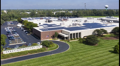 Spraying Systems Co. amplió su inversión en operaciones sostenibles con la instalación de un sistema de energía solar de 350 KW en 2019. El sistema consta de más de 1300 paneles solares instalados en el tejado de la sede de la empresa en Wheaton, IL.