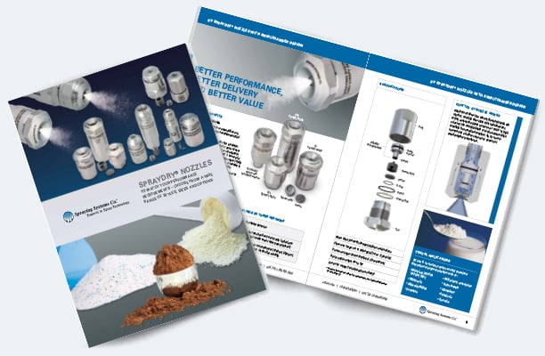 Las boquillas SprayDry® están disponibles para el secado de todo tipo de productos, como leche, suero, café, levadura, especias y preparados para lactantes; jabones y detergentes; tintes y pigmentos; productos químicos finos y productos farmacéuticos.