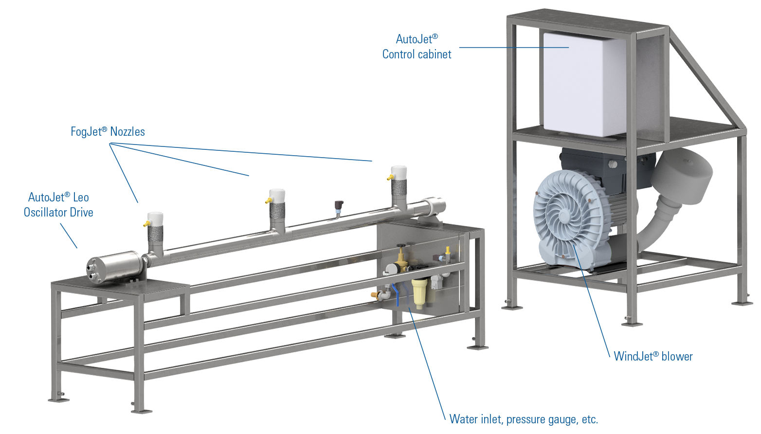 Comme solution, nous avons opté pour un système d'humidification FogJet® qui combine plusieurs produits de Spraying Systems Co :
