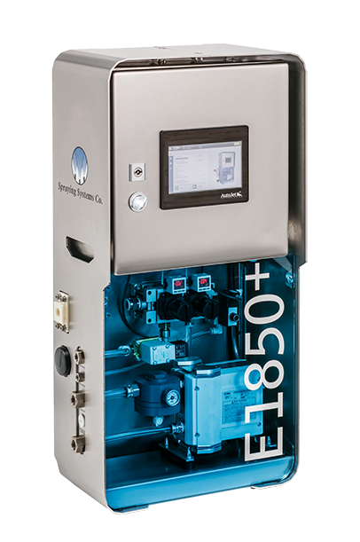 To reproduce the antique flecked finish with precision, our engineers designed a custom spray setup with our AutoJet® E1850+ Spray Controller: the heart of the system that ensures complete control over flow, timing, and spray pattern. Paired with an agitating pressure vessel, the setup maintains a perfectly mixed coating material for consistent application. A compact six-gun configuration, each equipped with SUJ15-stainless teel spray setups, provides fine, adjustable control across the full width of the brick line.