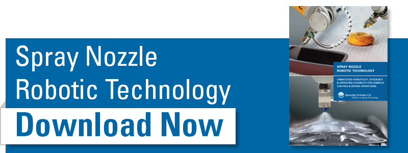 La combinaison de la technologie des buses de pulvérisation de précision et de la robotique offre aux fabricants une nouvelle façon de revêtir et de sécher des pièces de forme inhabituelle et/ou de taille variable. L'intégration d'un bras robotique et d'un système de vision à la pulvérisation de précision permet d'augmenter considérablement le débit et de réduire la consommation de fluides coûteux.