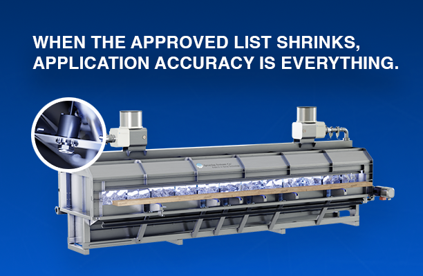 Both application geometries, spraying along the board length and across the full width of the line, present coverage challenges that automatic nozzle control resolves. Individually controlled nozzles that can be activated or shut off based on board width detection prevent biocide application to gaps between boards.