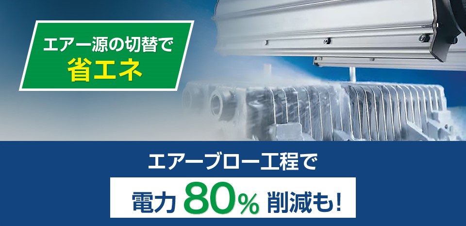 【工場の省エネ化】コンプレッサーの消費電力削減!エアブロー工程で80%省エネも