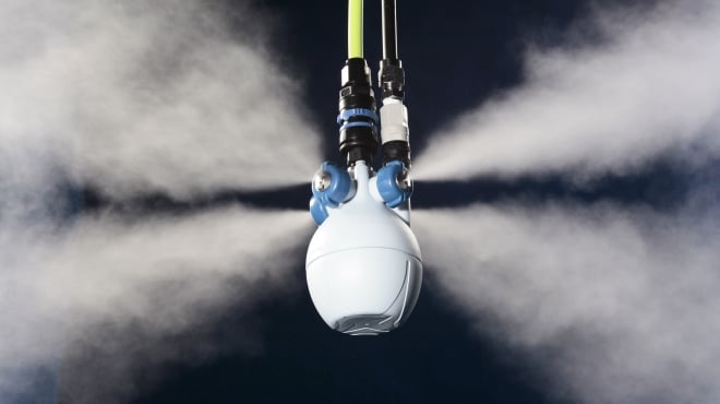 スプレー式加湿器には一流体方式と二流体方式があります。二つの方式を適切に使い分けること、あるいは併用することで、最適な湿度環境を創生することができます。
