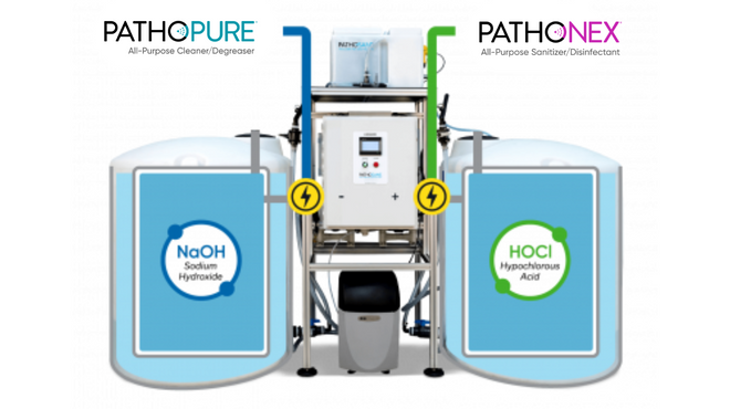 패토산 전기화학활성화 (ECA) 기술은 기존 방식의 전해액 혹은 활성수용액의 몇몇 단점을 보완하였습니다. (전해수 혹은 활성수는 일반 연수를 전기 분해하여 세정제와 살균제를 만드는 데 사용하는 방식을 말합니다.) 미네랄 함유량은 수돗물마다 다를 수 있기 때문에, 패토산 ECA 기술은 수돗물을 부드럽게 하거나 상태를 맞추고, 조절된 양의 탄산나트륨을 이용하여 미네랄 함유량이 지속적인 활성화에 알맞은 단계인지 확인합니다. 이렇게 되면, 지속적인 강력한 알칼리성의 수산화나트륨인 PathoClean® 세정제와 약산성 살균소독제 용액인 차아염소산 PathoCide®을 생산하게 됩니다. 기존의 전해수 또는 활성수는 이 두 용액을 혼합하는 반면, 패토산 기술은 이 용액을 나누어 더 큰 효율성과 우수한 세척 및 살균을 가능하게 합니다.
