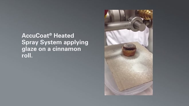 AccuCoat® System from Spraying Systems Co. Applying Glaze on Cinnamon Rolls