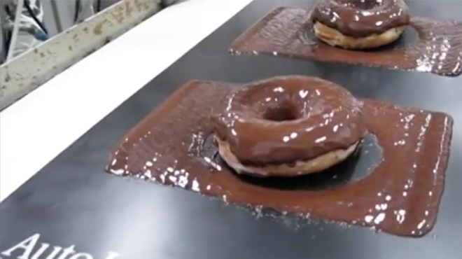 Spraying Chocolate on Doughnuts with AccuCoat® Heated Spray System