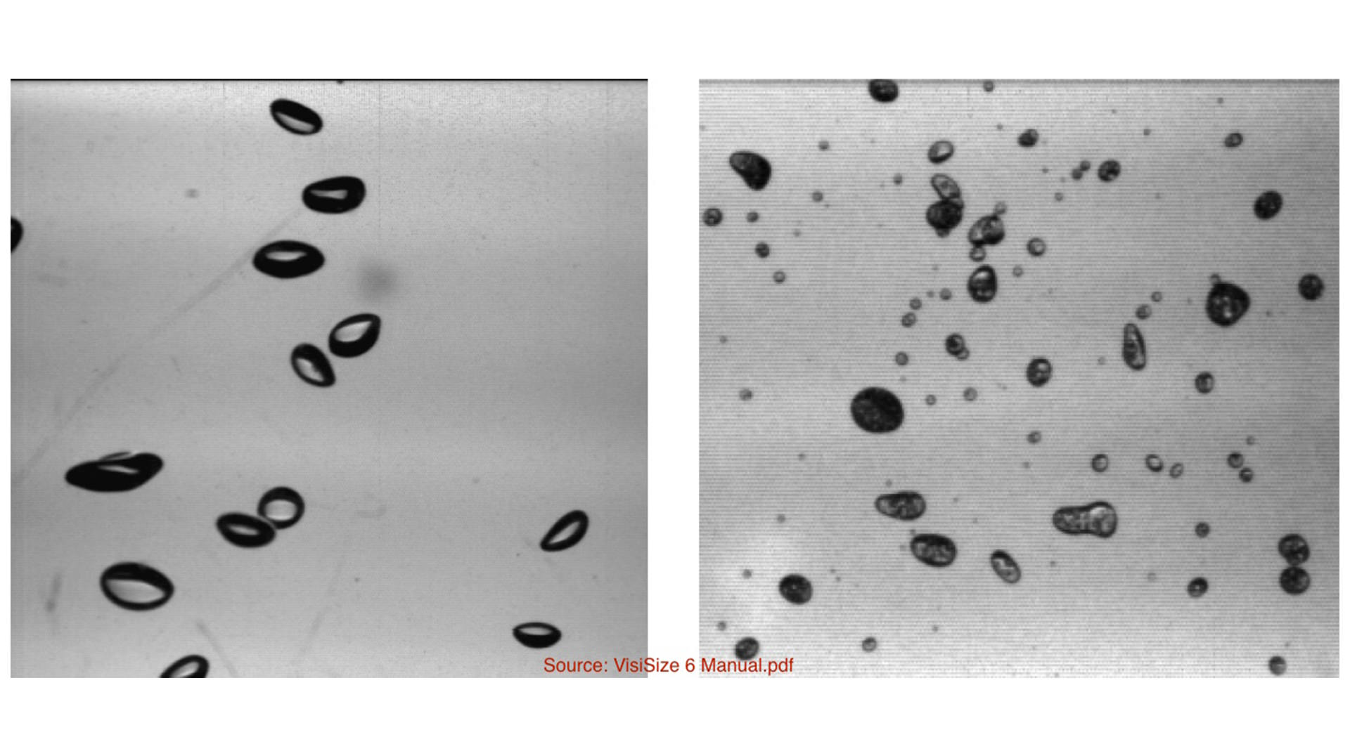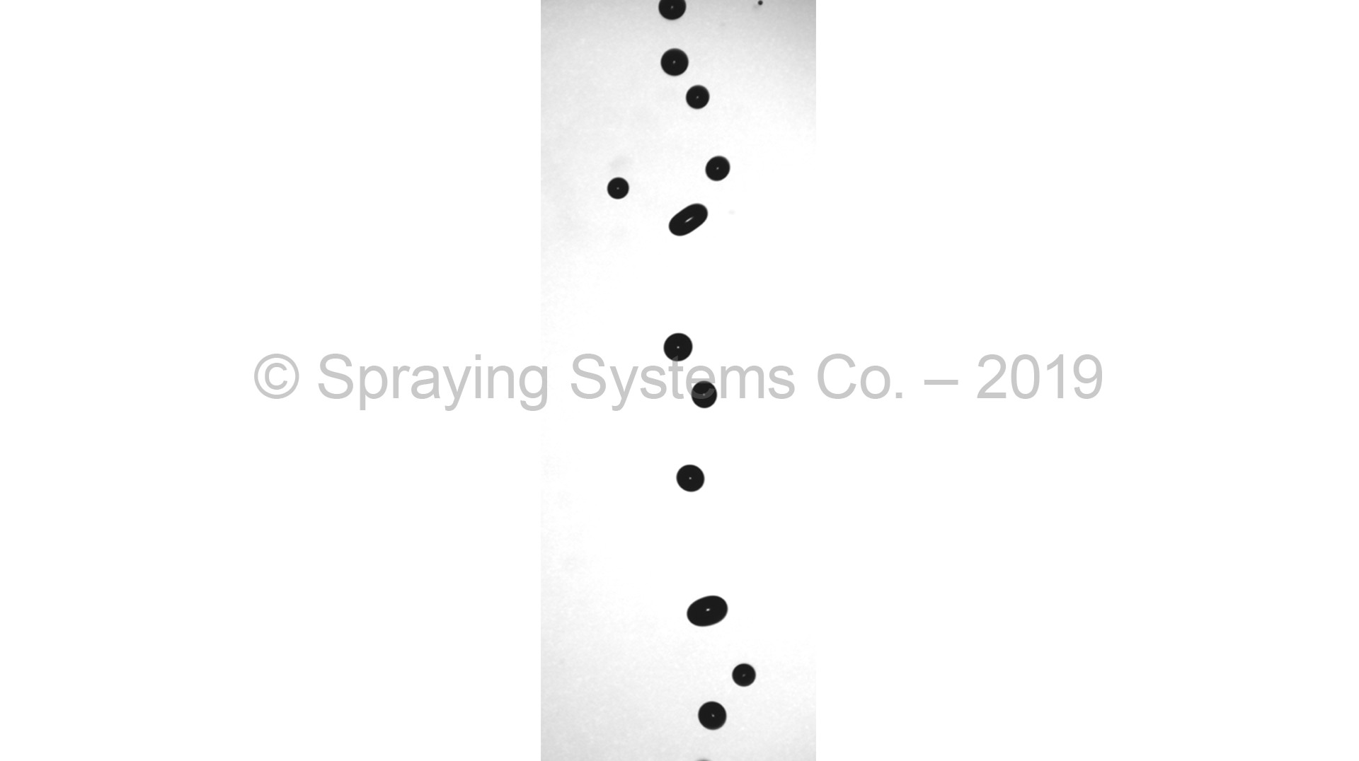 The images are spatially calibrated and thus have an associated length scale reference with each image frame, allowing for measurement of the droplet / particle size. Furthermore, image pairs may be acquired in order to track droplet movement and determine velocity characteristics. Other characteristics may be determined from these images as well, including sphericity, solids content and concentration. Spraying Systems Co. uses the Oxford Imaging VisiSizer instrument.