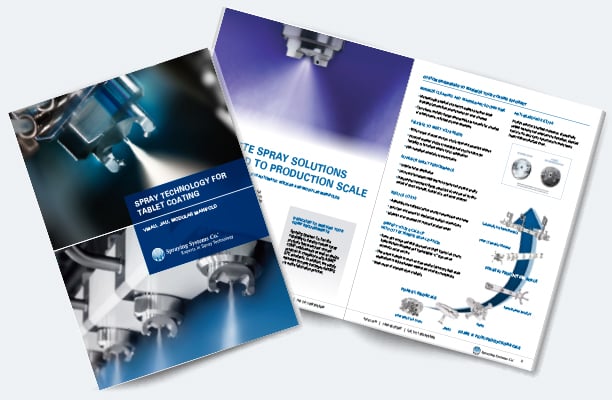Van kleine onderzoeks- en ontwikkelingsprojecten tot volledige productieschaal, Spraying Systems Co. biedt een verscheidenheid aan producten om aan uw behoeften op het gebied van tabletcoating te voldoen. Met de mogelijkheid om aangepaste producten te ontwerpen met materialen en componenten die voldoen aan alle huidige cGMP en FDA richtlijnen, zijn wij in staat oplossingen te bieden voor zelfs de meest complexe coatingproblemen, terwijl wij de productkwaliteit verbeteren en de onderhoudskosten verlagen