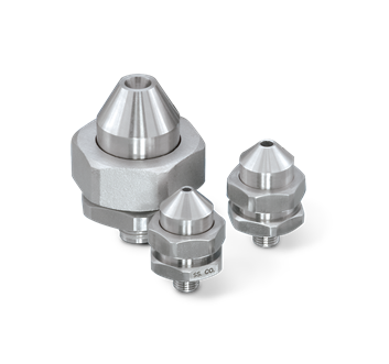 - Skuteczne nawet w trudnych warunkach: Szeroki wybór materiałów zapewnia optymalną wydajność dysz nawet w zastosowaniach wysokotemperaturowych i korozyjnych. Typowe materiały to stal nierdzewna 316 i 310, HASTELLOY®, Stellite® i węglik krzemu wiązany reakcyjnie. Inne są dostępne na życzenie.
