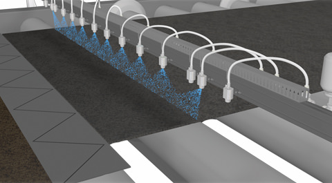 Os sistemas de laminação de espuma geralmente aplicam retardadores de fogo em excesso ou em falta, produtos químicos resistentes a manchas e outros produtos químicos nos pisos e tapetes durante a fabricação. A sobre-aplicação é dispendiosa e esbanjadora. A sub-aplicação causa problemas que só se tornam aparentes após a instalação. Os Sistemas de Pulverização de Piso e Carpete AutoJet eliminam esses problemas com cobertura consistente e uniforme - mesmo quando a velocidade da linha ou a largura do tapete muda. Os sistemas permitem: