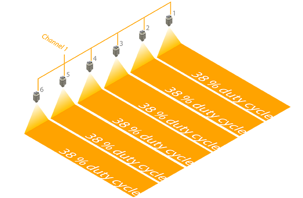 • Maximum 16 Pulsajet® on a single channel or 8 PulsaJet® on dual channels (2 sets of 8 PulsaJet® nozzles) (PWM and with an ambiant temperature of 35 °C)