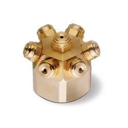 Plnokužeľové dýzy 7G pozostávajú z hlavy so siedmimi menšími dýzami. Vytvárajú jemný rozprašovací vzor a účinne tak zabraňujú šíreniu zdvihnutého prachu. Na jednotlivých prepravných vežiach (TT) boli do kruhu nainštalované duté kužeľové dýzy typu WhirlJet® BD, ktoré striekajú šikmo zhora na dopravné pásy. Rozprašovacia clona potláča vznik alebo šírenie prachu viazaním častíc. Napokon boli pred otvorom zásobníka použité dvojfázové trysky. Tie rozprašujú vodu stlačeným vzduchom a vytvárajú tak mimoriadne jemné spektrum kvapiek (d32 ≈ 30 µm(pracujú pri tlaku rozprašovacieho vzduchu 3 barg a tlaku kvapaliny 3 barg)). Výsledkom je, že obzvlášť jemný prach vyskytujúci sa v tomto bode sa môže veľmi dobre spájať. Všetky vedenia k systémom trysiek boli dodatočne vybavené filtračnými jednotkami. Tým sa predlžujú intervaly údržby, ako aj celá životnosť dýz(zdroj).